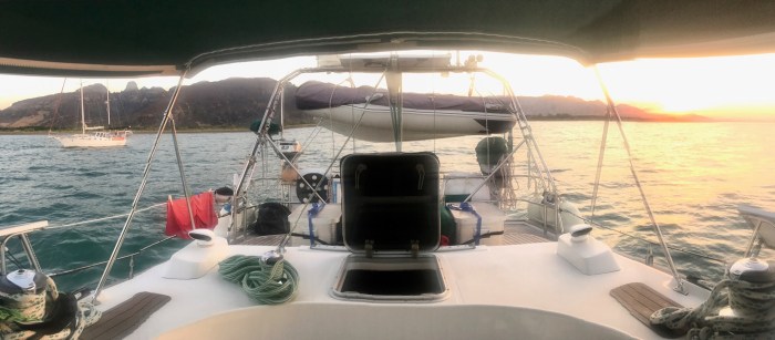 Die hinter uns zu bringende Strecke bedeutete, entweder zwei Nächte und einen Tag zu segeln, oder umgekehrt, zwei Tage und eine Nacht, was bedeutete, dass wir genug schnell sein müssten um am Abend noch bei Tageslicht anzukommen, Die Umgekehrte Variante ist von dem her gesehen entspannter, da wir noch einen ganzen Tag Zeit hatten, falls wir langsamer sein sollten als geplant. Wir entschieden uns für die zweite Variante!