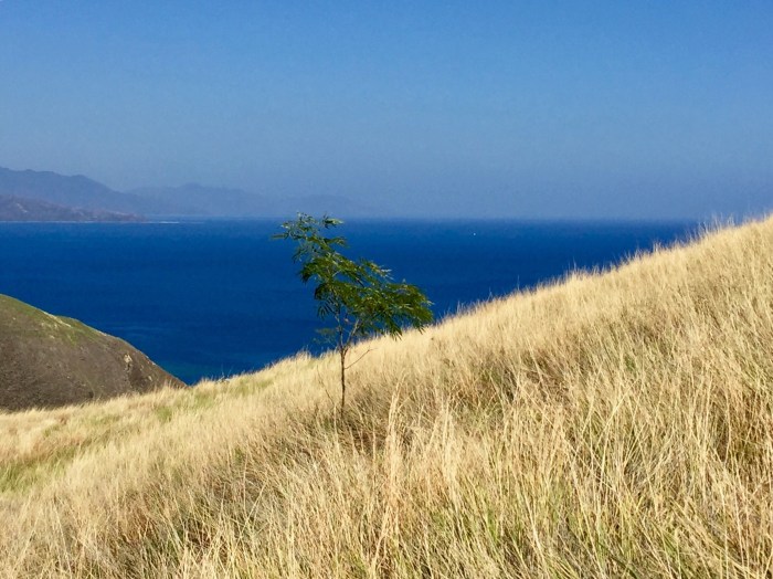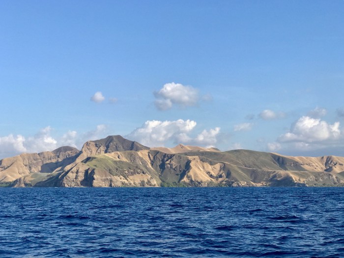 Je näher wir an die Insel Flores kamen, umso interessanter sah die Inselkette aus. Goldbraun und kahl zeichneten sich die Bergzüge am Horizont ab. Nie und nimmer hätten wir eine solche Landschaft erwartet, sondern eine tropisch bewaldete Insel. Aber es sah faszinierend schön aus.