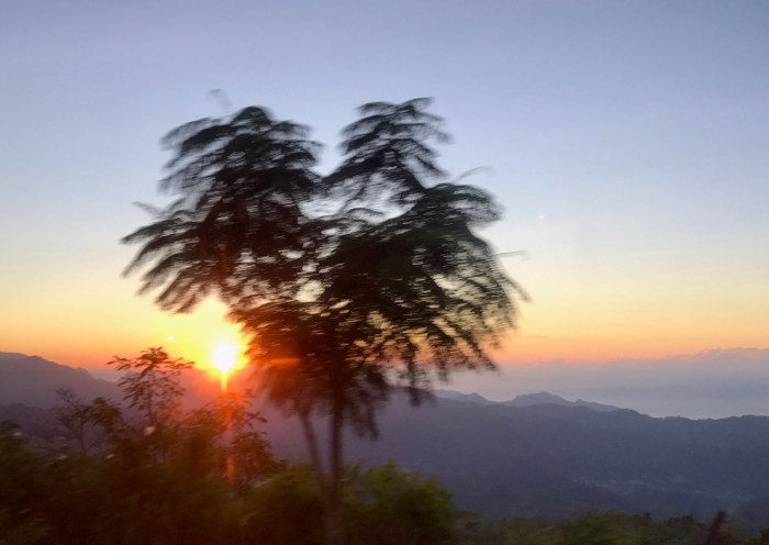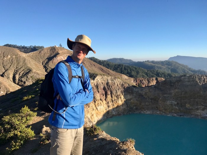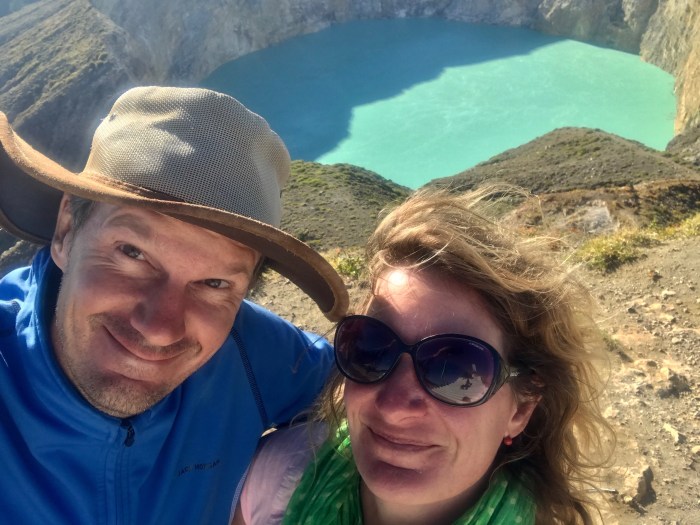 Wer diese verrückte Idee hatte und wir uns alle überzeugen liessen, lassen wir mal im Dunkeln. Aber der Plan war, am nächsten Morgen den Sonnenaufgang über den Kelimutu Vulkanseen zu sehen zu bekommen. Die Seen waren drei Auto Fahrstunden entfernt – was hiess, dass wir uns um drei Uhr nachts am Strand besammelten! Den Kaffee gab es bereits um halb drei! Bis dann der Bus und der Fahrer erschienen, dauerte es nochmals fast eine halbe Stunde. Ich denke wir stellten uns die nächtliche Reise alle ein wenig anders vor; nämlich dösend bis wir ankommen. Es rechnete keiner damit, dass die Strasse so miserabel und voller Schlaglöcher war, dass wir uns im engen Bus die Köpfe im Minutentakt aneinander schlugen! Es war nicht an Schlaf zu denken und wir waren dann alle froh, als es dann langsam am Horizont begann heller zu werden und wir etwas sehen konnten. Durch das zu Spätkommen des Fahrers sahen wir den Sonnenaufgang dann im Bus!