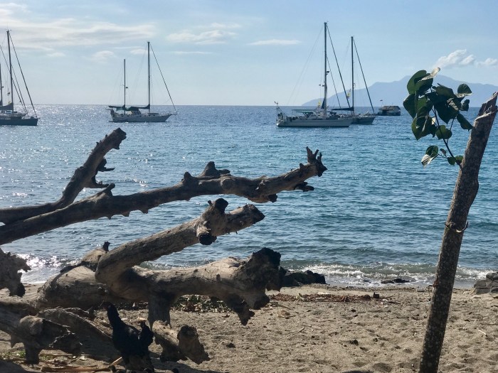 Zu viert ankern wir vor der kleinen Insel wo Affen am Strand nach Essbarem suchen!