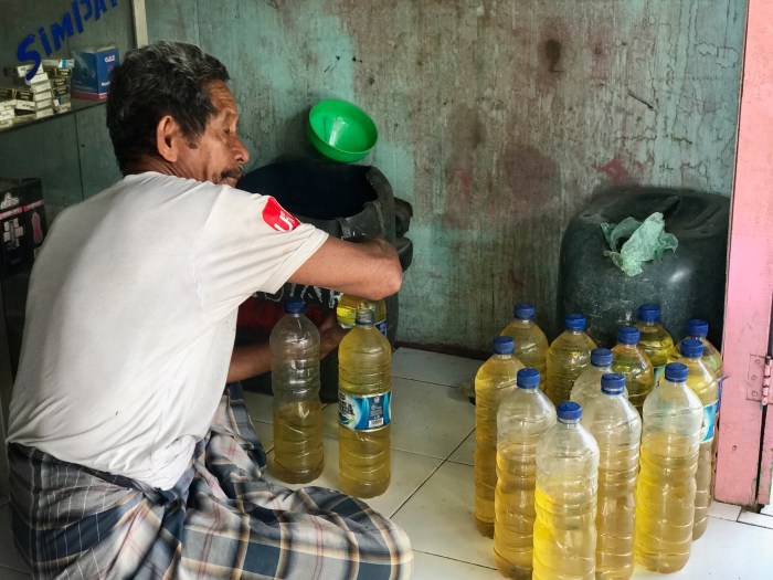 «Bensin» wird in Flaschen abgefüllt und wieder verkauft