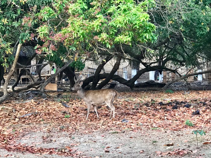 Um sechs Uhr morgens trafen alle auf der Insel ein und wir marschierten gemeinsam in Richtung Rangerhaus, wo wir für unseren Ausflug bezahlen sollen. Wir entschieden uns für einen zwei Stündigen Spaziergang über die Insel, wo wir hofften, auf wild lebende Warane zu stossen. Doch schon auf dem Weg zum Rangerhaus mussten wir für zwei der grossen Echsen den Weg frei geben! In gemächlichem Schritt bewegten sie sich züngelnd auf dem Weg in Richtung Rangerhaus – ob es da wohl etwas zu futtern gibt? Eigentlich hatten wir sie nun ja schon gesehen – wir könnten eigentlich wieder gehen!