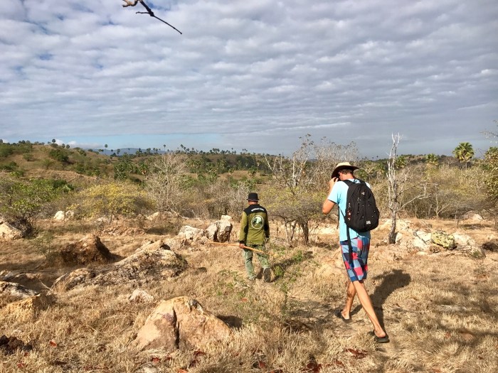 wir entdecken viele Tierspuren, diese hier sind von den Komodo Warane – weiss wegen dem vielen Kalk da sie die Knochen auch fressen