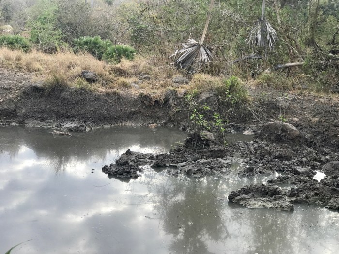 Das Wasser wird zu seicht, die letzten Meter müssen wir laufen, und die Flip Flops verschwinden im Schlamm!