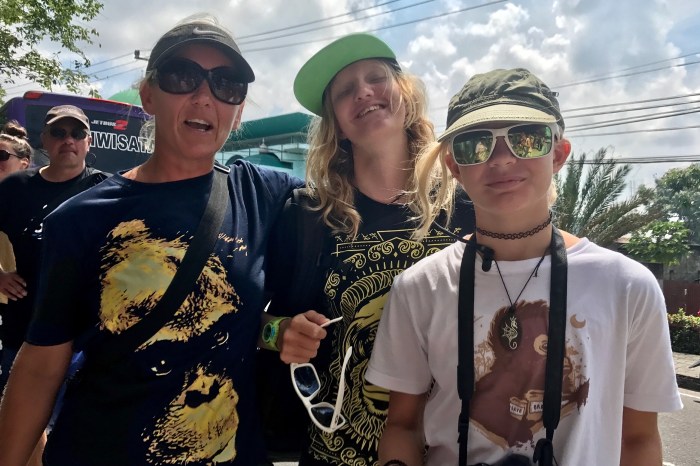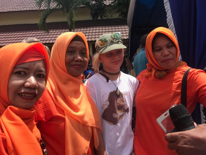 Amanda Johnston, Neele und Lenja tragen ihre Orang Utan T-Shirts aus Kumai