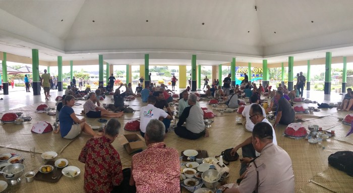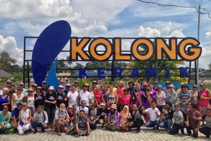 Am nächsten Tag wurde uns eine Tour offeriert. Die Tour führte uns in die grösste Stadt in Belitung, nach Tanjung Pendam, wo wir mit grossen Reisebussen und Polizei Eskorte eine Schule und ein Museum besuchten und zum Lunch eingeladen wurden. Belitung ist berühmt für grosse Meteroiten-Funde. In einem Verkehrskreisel war ein riesiger solcher auf einer Säule ausgestellt und im Museum konnte man kleine Exemplare kaufen. Danach hatten wir alle noch kurz Zeit, uns in der Stadt umzusehen, Einzukaufen und einen Einblick zu gewinnen.
