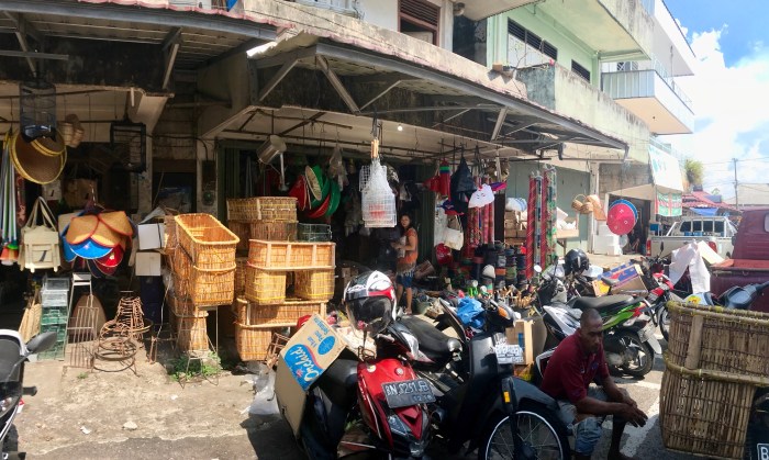 Einer der typischen Strassenläden mit allerlei brauchbarem, man beachte die Körbe für die Motorräder