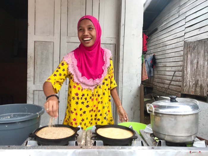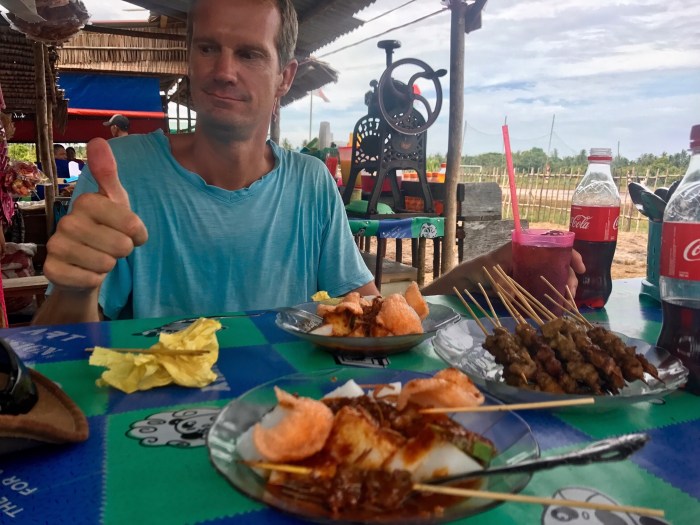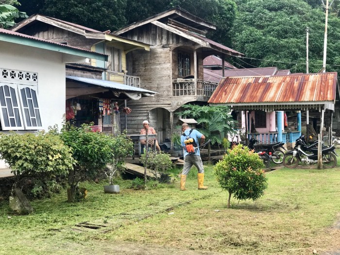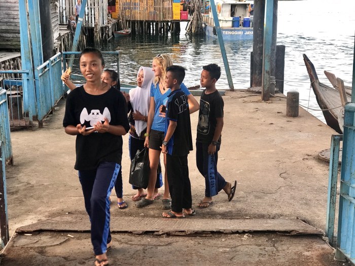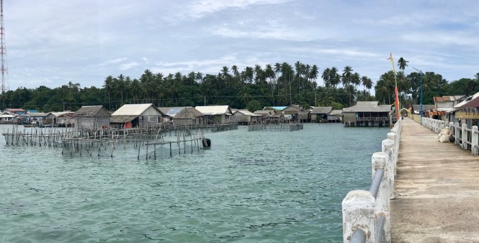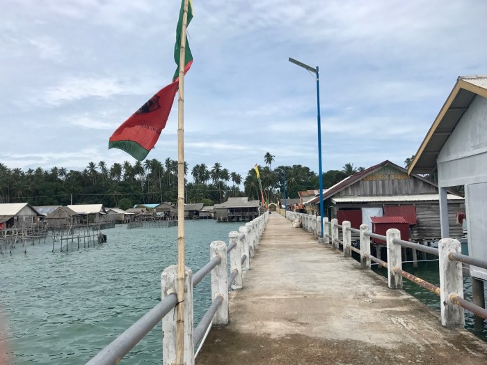 Die kleine Insel war sehr hübsch. Die Häuser des Dorfes waren wie so oft teilweise auf Stelzen gebaut. Gerade fand ein Fussball Festival auf Benan statt und viele Besucher kamen von ändern Inseln angereist. Es war toll an den lokalen Festivitäten teilzunehmen – was mehr oder weniger hiess, dass wir uns die Mägen von den vielen Food Ständen und Restaurants vollschlugen. All die Unterstände waren hübsch mit runden Naturholz Stangen genagelt. Viele haben so kunstfertige Zäune genagelt.