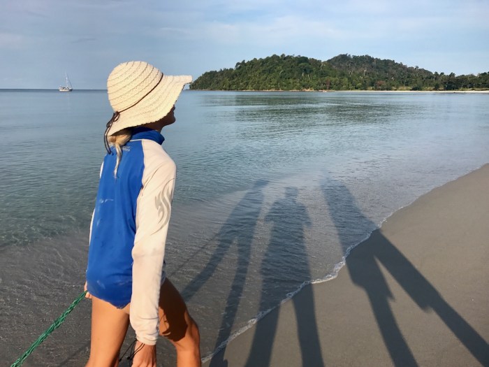 Wir fuhren somit also ein Stück zurück, an die Südspitze von Lingga island und ein Stück um das Huck herum, wo sich vor unseren Augen ein langer Sandstrand ausbreitete. Noch mehr als der schöne, lange Sandstrand erquickte uns das ruhig liegende, schwellfreie Wasser. Die Seele baumeln lassen, das war das, was wir da gut konnten!