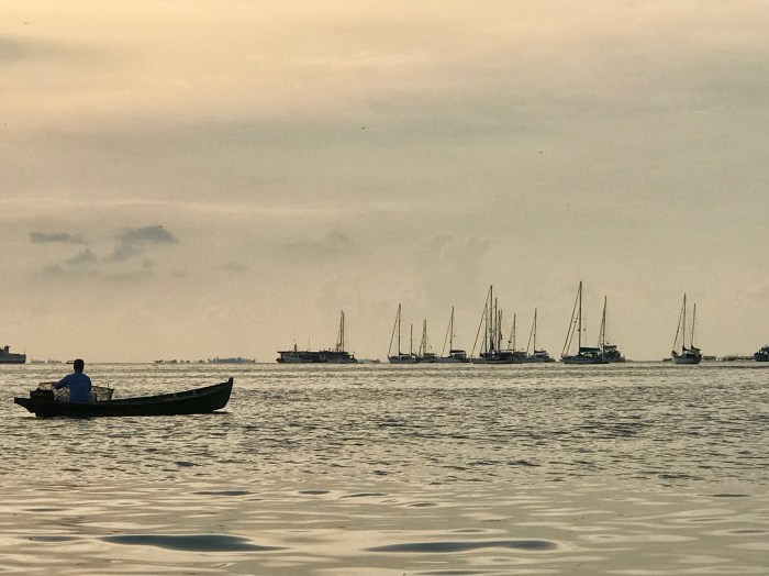 Das Inselleben war entspannend, es gefiel uns auf Benan, keiner freute sich so recht auf den nächsten und letzten Stop der grossen City «Tanjung Pinang». Einen Tag haben sich alle noch angehängt um nochmals zu geniessen. Am nächsten Tag brachen dann aber die meisten dann doch auf. Bei uns herrschte noch Unklarheit. Kim zog es nicht nach «Tanjung Pinang». Ich wollte nichts verpassen da es ja der letzte Treffpunkt der Rally sein würde. Es bot sich leider auch kein netter Ort auf der Strecke an. Mit einem Hin und Her und nicht ganz entspannter Bordatmosphäre kam es dann schliesslich dass wir nach Tanjung Pinang fuhren.