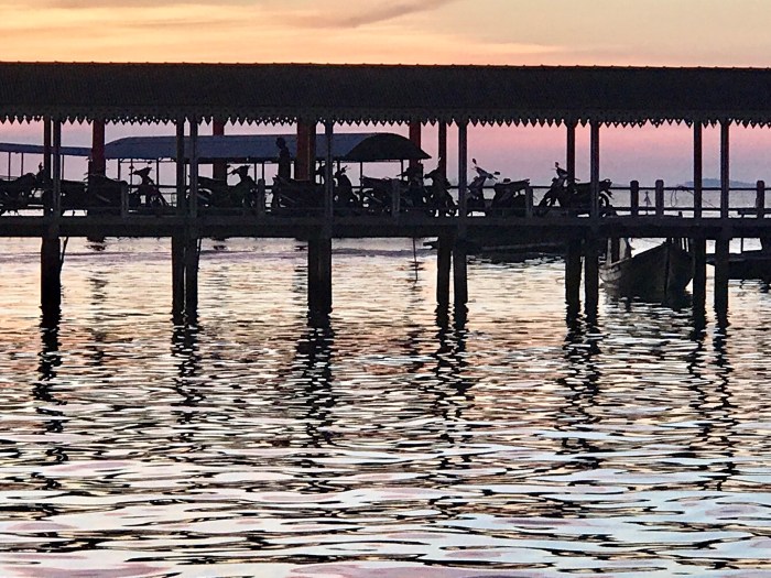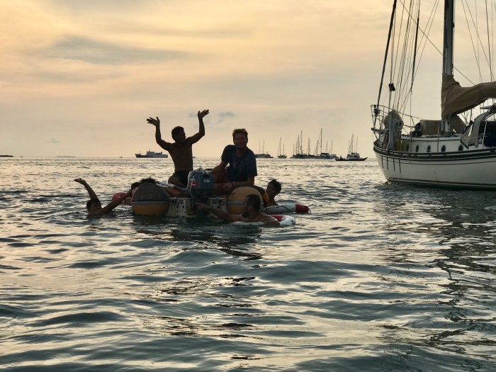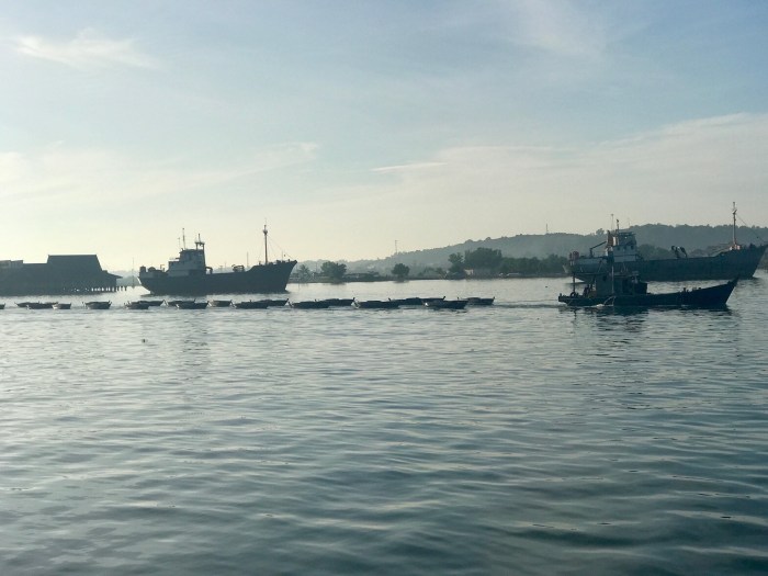 Am nächsten Morgen treffen wir uns mit den andern Rally Teilnehmern beim Dinghy Dok. Dies liegt vor einem Hotel dessen Terrasse auf Stelzen gebaut ist, wie viele der anderen Häuser am Fussufer. Wir setzten uns zusammen in der Vorhalle, alle mit den Pässen und Dokumenten bewaffnet, für das Ausklarieren. Wir stellten fest, dass nicht nur bei uns die Stimmung nicht ganz fröhlich war. Der Grund war vor allem die Enttäuschung, vor dem offiziellen Rally Ende aus dem Land zu müssen. Die Organisation scheiterte an diesem Punkt; Unsere 90 Tage Indonesien Visa waren vor dem geplanten Gala Dinner in Tanjung Pinang abgelaufen. Es war traurig, dass wir diese tollen drei Monaten in Indonesien, wo Freundschaften geknüpft wurden und wir viele Erlebnisse teilen konnten, nicht zusammen ehrenhaft beenden konnten.