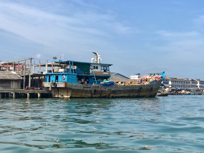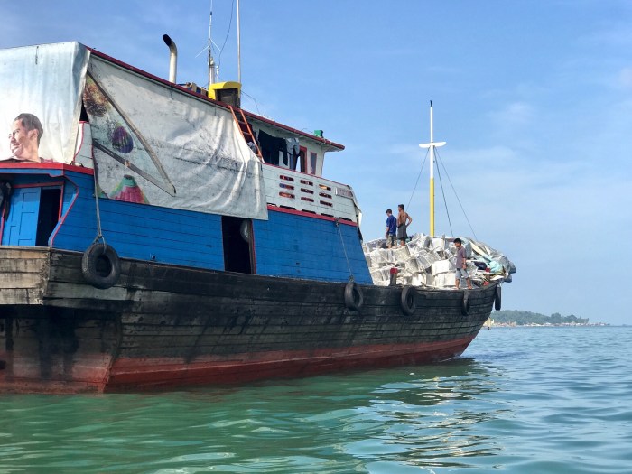 Tanjung Pinang ist kein sauberer Ort – es war fürchterlich wie viel Plastik im Meer schwamm..