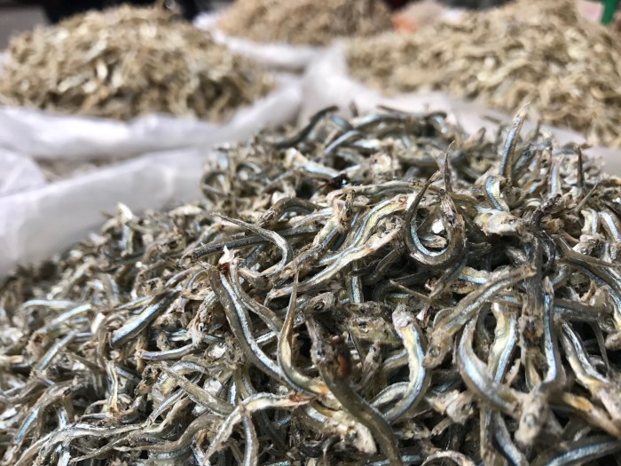 In den Säcken sind winzig kleine getrocknete Fischchen