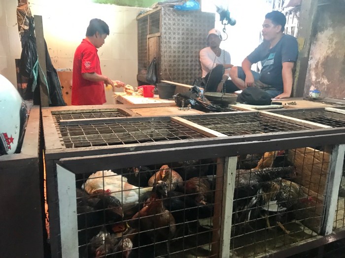 Hier werden die Hühner lebend ausgewählt und dann direkt geschlachtet