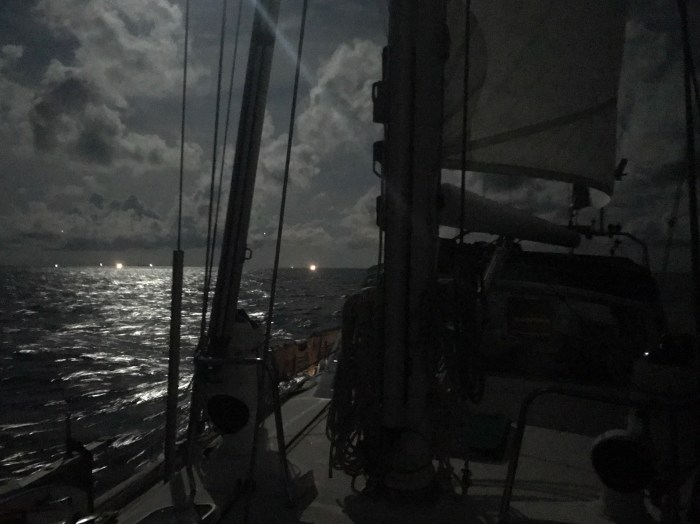 Die Windsituation zog sich durch, kurz war mal Wind, dann wieder eine lange Zeit keinen mehr. Das schöne waren die zwei Nächte mit dem hellen Vollmond. Die Nächte waren fast so hell wie der Tag, es war wunderbar.