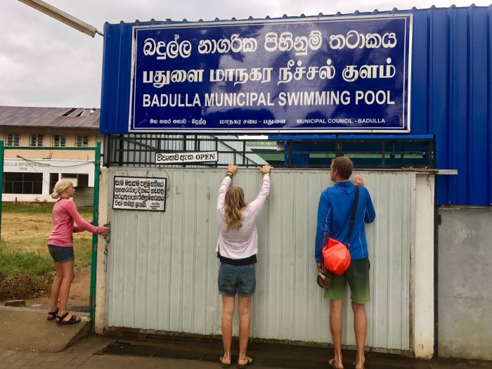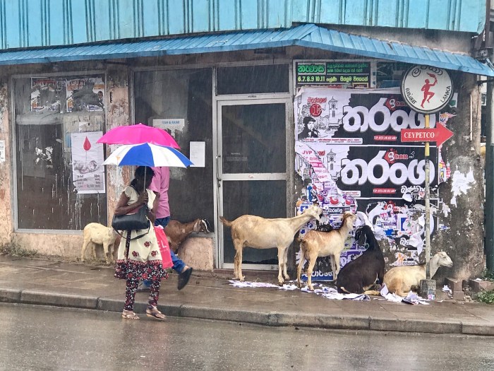 In Badulla reservierten wir das erste Mal kein Air BnB, sondern suchten selber ein Plätzchen. In der Stadt waren wir wiederum die einzigen Touristen. Wir wussten nicht so recht, ob es eine gute Entscheidung war, in die Stadt zu reisen. Wieder eine lärmige Stadt und es war regnerisch und somit lag überall Schmutz und Schlamm auf den Strassen. Doch es ist immer so, überall sieht man dann doch wieder Dinge, die einem Überraschen und besonders sind! So machten wir eine lange Wanderung durch «Badulla», überquerten eine lange Seilbrücke die über eine Schlucht ging, fanden ein kleines Museum aber das lustigste und eigenartigste waren die Ziegen, die überall in der Stadt die Plakate von den Plakatwänden frassen!