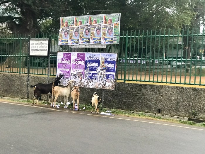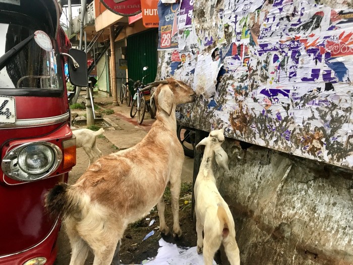 Badulla ist keine besondere Stadt – kein einziger Tourist bekamen wir zu sehen, aber überall gibt es dann trotztdem etwas ausserordentliches: In Badulla fressen die Ziegen die Plakatwände leer!