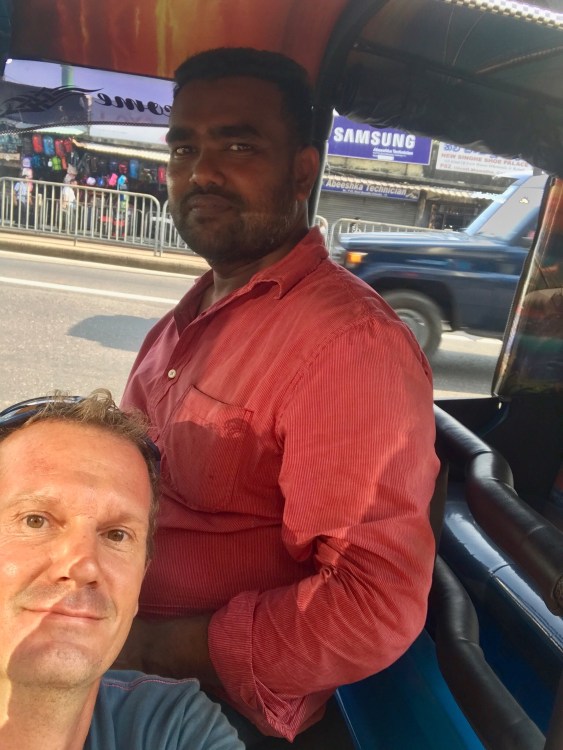 In Colombo , der Hauptstadt von Sri Lanka, brodelte es! Menschen und Verkehr mischten sich in atemberaubendem Gewimmel und Lautstärke! Nachdem wir mal eine halbe Stunde herum gelaufen waren, wurden von einem Tuck Tuck Fahrer angefragt, ob wir mit ihm eine kleine Stadtrundfahrt zu den bekannten Plätzen machen wollten. Der Preis war gut und wir fuhren zwei Stunden mit ihm durch die Stadt. Es war toll, in dem offenen, kleinen Fahrzeug zu sitzen und sich nicht um die halsbrecherischen Fahrstile der anderen Verkehrsteilnehmer kümmern zu müssen! Das anhaltende Hupkonzert war im Preis inbegriffen!