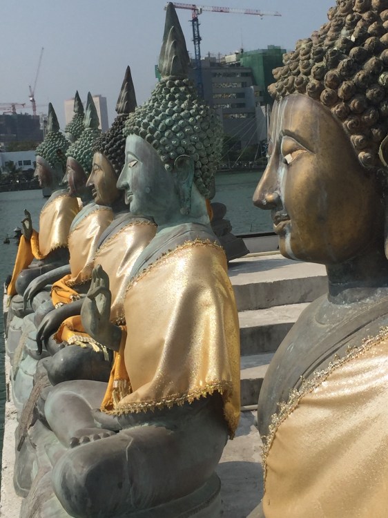 Wir kamen zu interessanten Tempeln, einer der mehr ein Museum war, voll mit Sammelsurien von alten Sachen. Ein anderer hatte riesengrosse 3D Buddhafiguren.. Wir kamen am «Weissen Haus» von Sri Lanka vorbei, und am Platz der Unabhängigkeit, der vom Militär bewacht wurde.