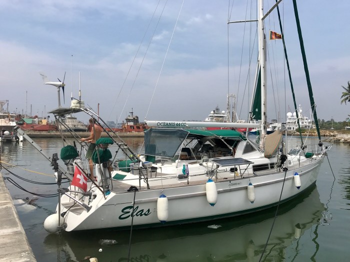 Das Boot hatten wir in einem speziellen Teil nur für Yachten, im Industriehafen von Galle, vertäut. Wir waren gewarnt worden: Schwell, Schmutz und Betonstaub sollen die negativen Punkte sein… doch der Hafen wird von Securitas kontrolliert und soweit waren wir zufrieden mit der Situation – und vor allem gespannt auf das neue Land!