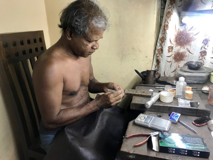 Wir hätten die Einladung gerne angenommen, doch wir waren an diesem Abend bereits zu einer Sri Lankischen Familie eingeladen. Einer der Hafen-Securitas nahm schon bald nach unserer Ankunft Kontakt mit uns auf, gab uns Tips und Bücher für eine Sri Lanka Rundreise… Als wir nun zurück waren, kam er immer wieder mal vorbei und zeigte uns geschliffene Edelsteine. Das Land wo er aufgewachsen war, war im Innern von Sri Lanka, wo es viele Edelstein Minen gibt und in der Nähe von der berühmten Geschichts-Stätte «Sigirya» liegt. Das Land gehört immer noch ihm und es werden darauf Edelsteine auf traditionelle Weise, durch ausschwemmen, geschürft.