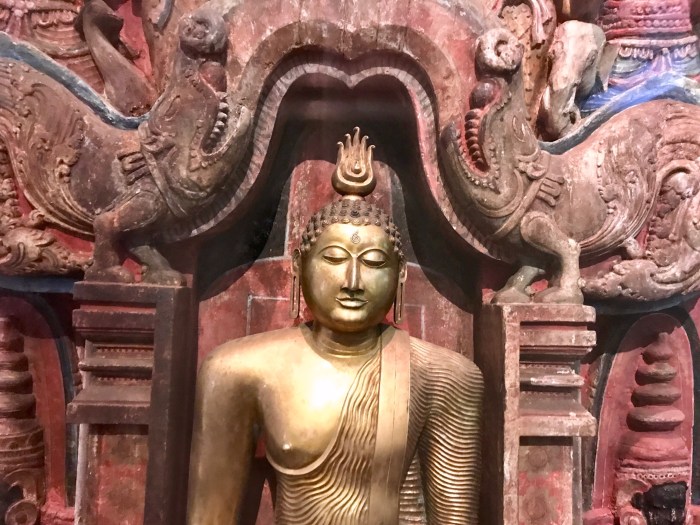 Nach unserem Trip mit dem Tuck Tuck, wanderten wir noch durch die verschiedenen Einkaufsstrassen, wo die je nach Strasse spezialisiert waren: In einer wurde nur Zwiebeln und Knoblauch verkauft. Da waren die Läden bis oben gefüllt mit Säcken dieser Waren und Lastwagen verstopften die Strassen. An anderen waren die Mechaniker ansässig – Alles mechanische wird repariert und wieder zum Laufen gebracht. Wieder in anderen Strassen wurden Kleider verkauft ect. Am Tag darauf, nach unserer ersten Übernachtung in Colombo, verbrachten wir im «National Museum«, wo es viel interessantes zu sehen gab – hauptsächlich alte Figuren von Buddha Statuen oder alte Hindu Figuren. Elfenbein Schnitzereien, Schmuck, alte Bilder usw. Im Preis inbegriffen war noch das «Naturhistorische Museum», das Museum war über dreissig Jahre alt und somit selber museumsreif! Die ganzen Bilder und Beschreibungen waren noch gemalt!