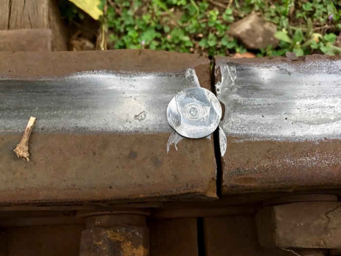 Wir legten eine Münze auf die Schiene!