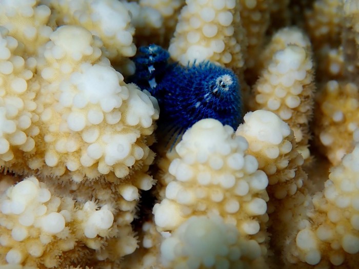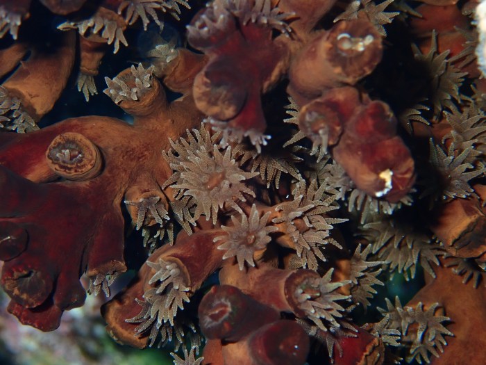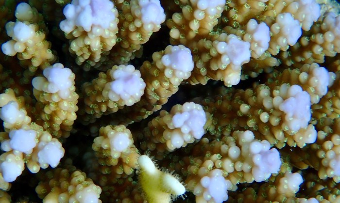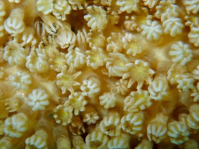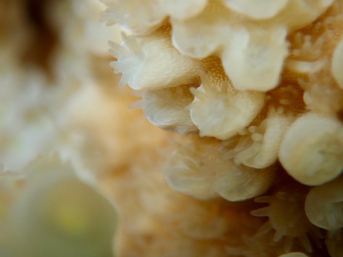 Hier kann man die Polypen besonders gut erkennen. Diese Leben in Symbiose mit Bakterien und bilden gemeinsam die Koralle
