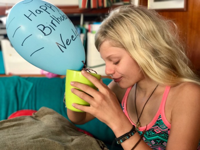 Wir würden weitere drei ganze Tage hinter dem Riff verbringen, darunter auch Neeles elfter Geburtstag! Wir hatten viel Zeit für Schularbeiten und machten mindestens einmal einen Ausflug mit dem Dinghy durch die Wellen zum Schnorcheln. Die Bedingungen waren natürlich nicht gerade optimal dafür, es war unruhig und gab auch viel Strömung. Aber die Unterwasserwelt war atemberaubend und das Wasser traumhaft klar!