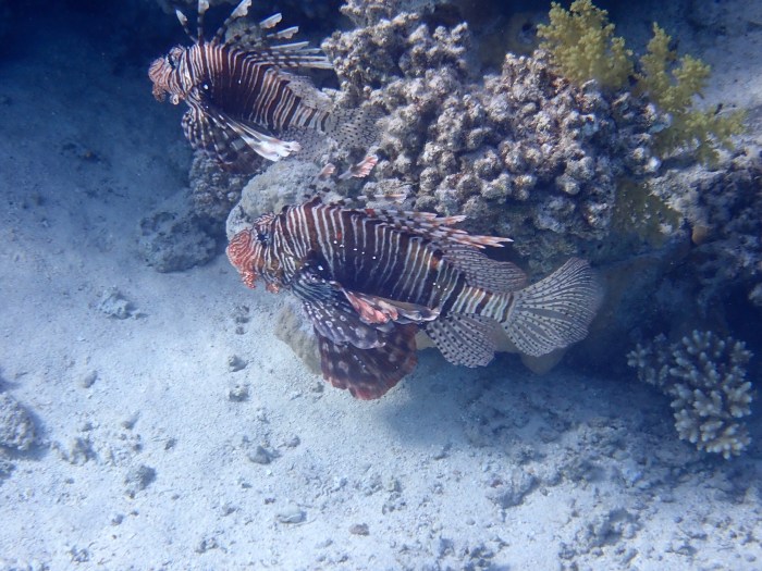 Diese zwei Feuerfische sind gemeinsam unterwegs