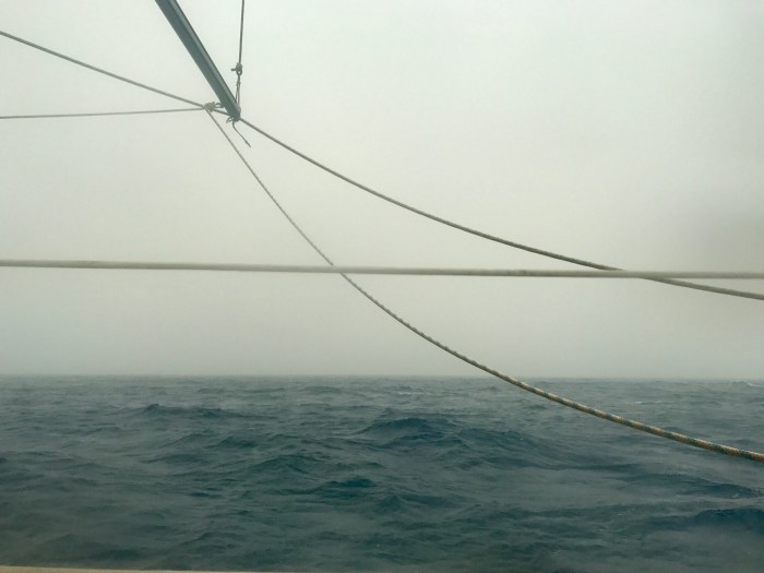 Der gute alte Wind hielt sich aber leider nicht an den Plan und brachte uns noch eine Überraschung mit… Die Windrichtung änderte sich schon einige Stunden früher, noch bevor wir das Riff erreicht hatten. Es wurde hart mit dem Vorwärtskommen. Wir mussten aufkreuzen, das heisst, einen Winkel zum Wind fahren, obwohl das einen Umweg bedeutete. Direkt in den Wind und in die schnell aufgebauten Wellen zu fahren bedeutete, dass wir kaum mehr vorwärts kamen… Zweifel, ob wir uns richtig entschieden hatten, kamen langsam hoch.