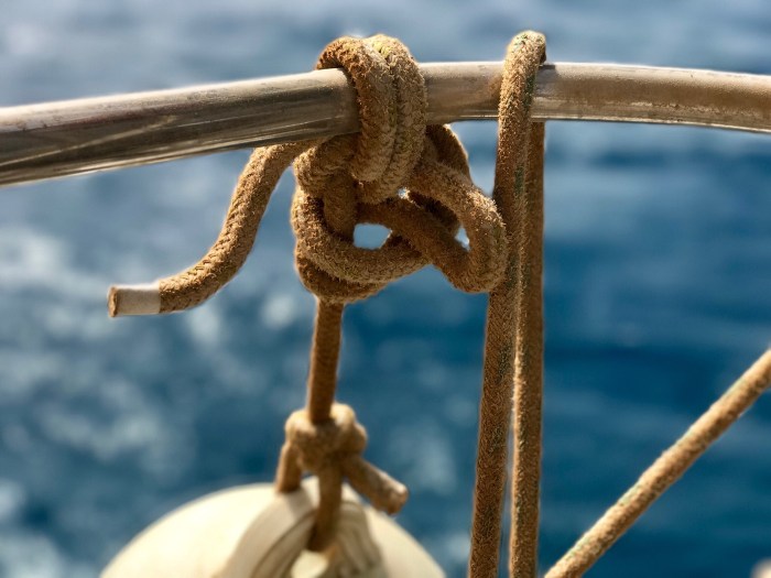 Für die Nacht machen wir noch eine zweite Leine fest, damit sich das Boot nicht in Richtung Riff bewegen kann