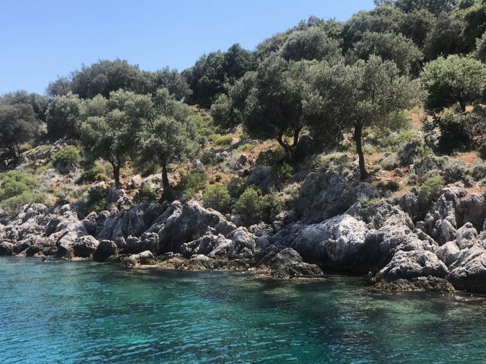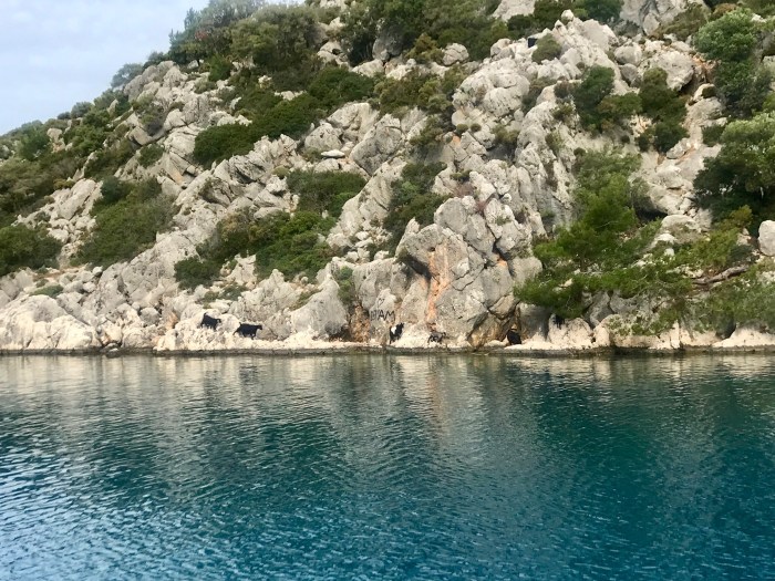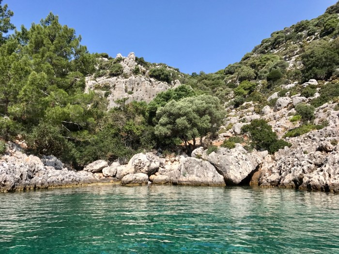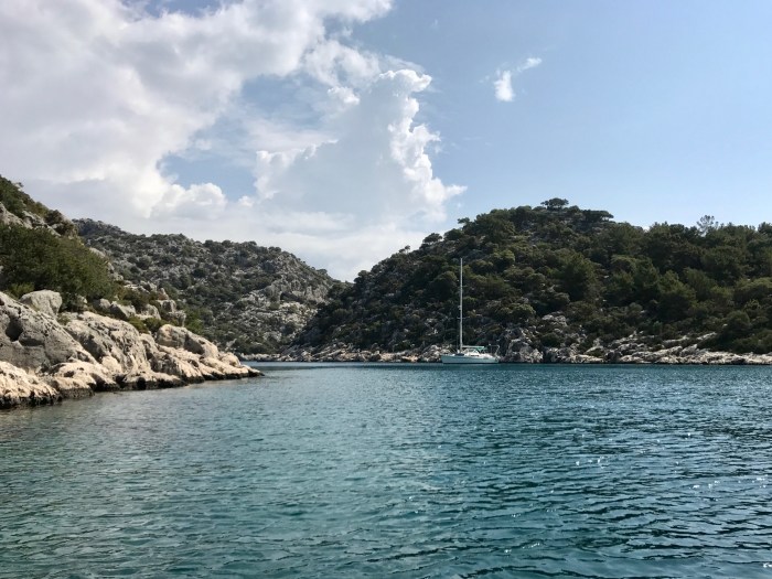 Während wir unterwegs waren, entschieden wir uns ein paar Mal um und fuhren dass schliesslich in eine immer schmäler werdende Bucht, für mich einen «Fjord», ein auf der Insel Kekova.