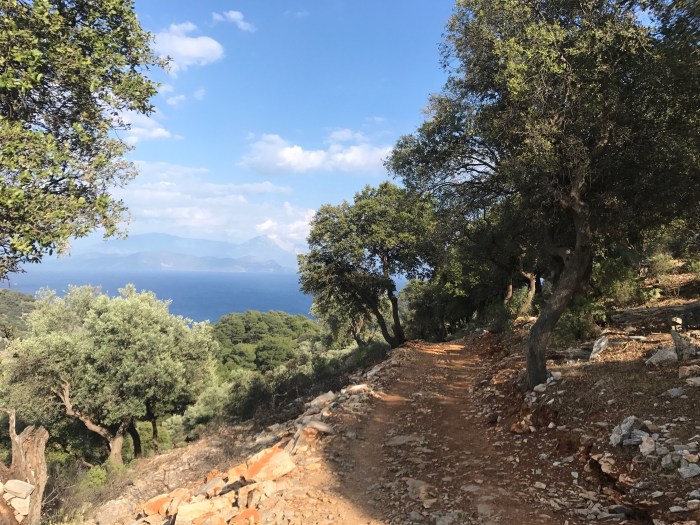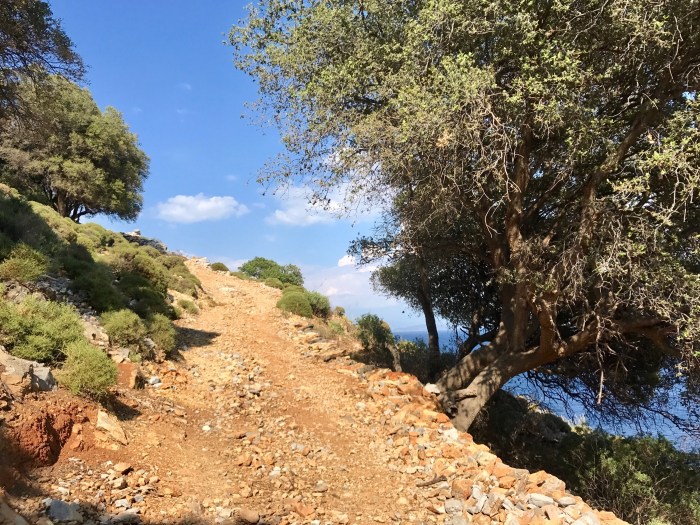 Wir kamen weit nach oben und die Aussicht wurde sensationell. Ein Stück weiter schien die Strasse gemäss meinem Handy-App nicht mehr weiter zu gehen und wir kamen an ein Schild, das uns sagte, in 4km wären wir auf einem Wanderweg wieder in Finike. Das war natürlich super, dass wir nicht mehr den selben Weg zurück nehmen mussten!