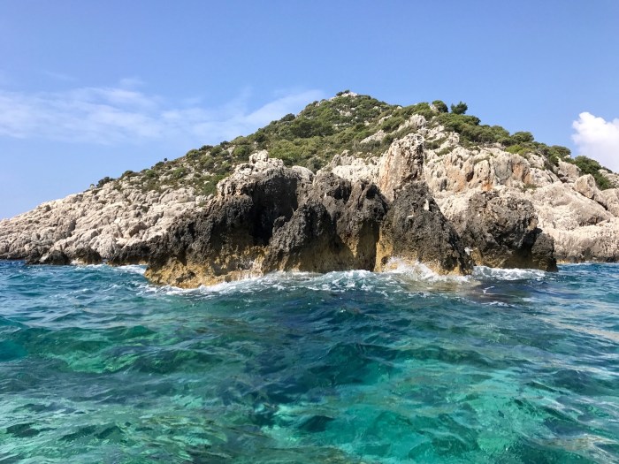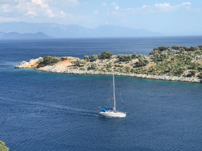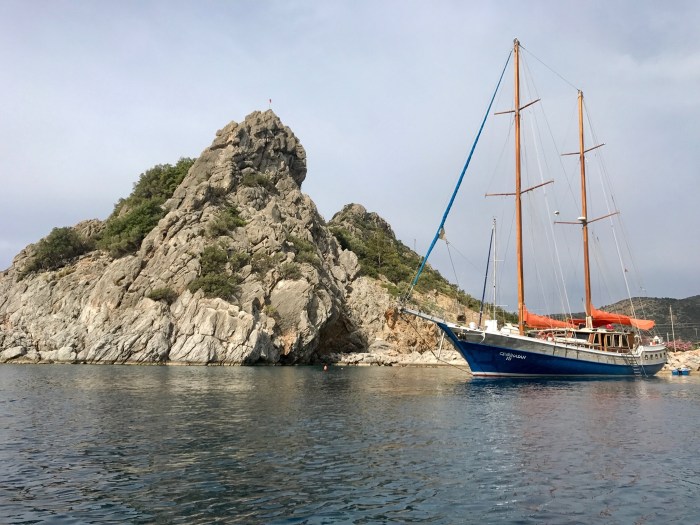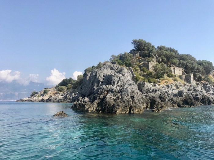Unser Ankerplatz liegt bei Mevkii, neben einer kleinen Insel voller Ruinen