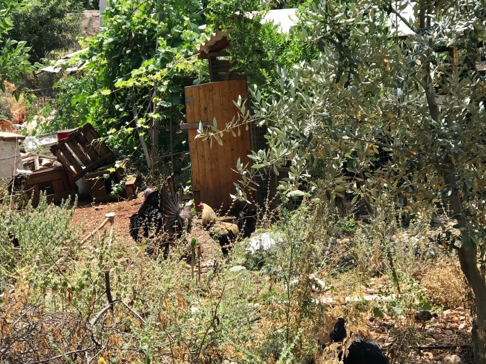 Hinter dem Haus, Hühner und Truthähne, Olivenbäum und Reben. Typisch mediteran!