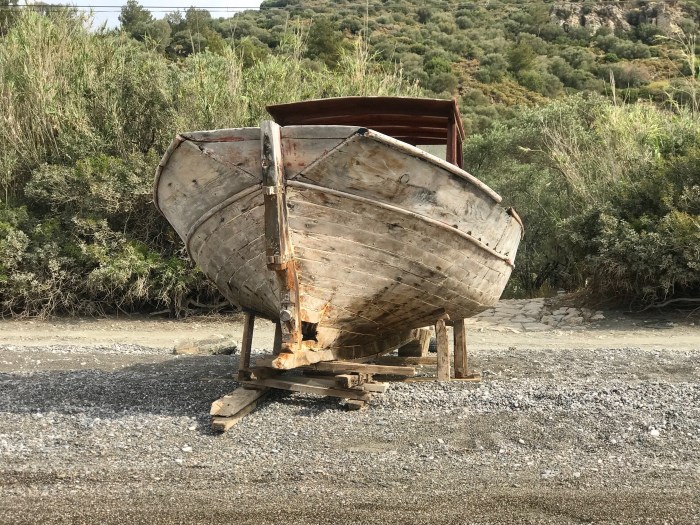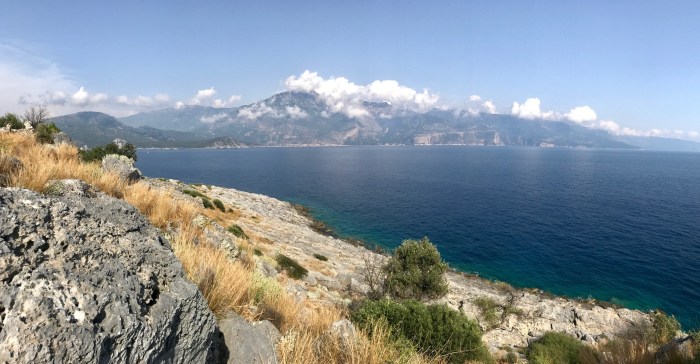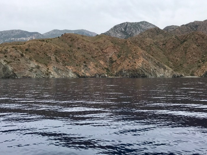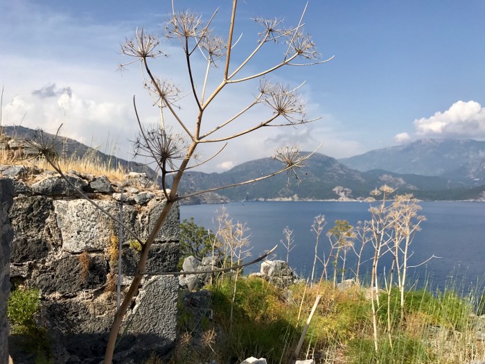 Auf der kleine vorgelagerten Insel sahen wir viele Ruinen. Das sah interessant aus. Kurz nach unserer Ankunft am Ankerplatz erkundeten wir den Ort. Wir entdeckten zerfallene Kirchen und viele andere Gebäude. Wir fragten uns, warum der Ort wohl verlassen wurde, wer da wohl gelebt haben musste? Wiederum waren wir fasziniert vom Mittelmeer, von der Aussicht auf die Berge und das Meer, die wunderschöne Landschaft.