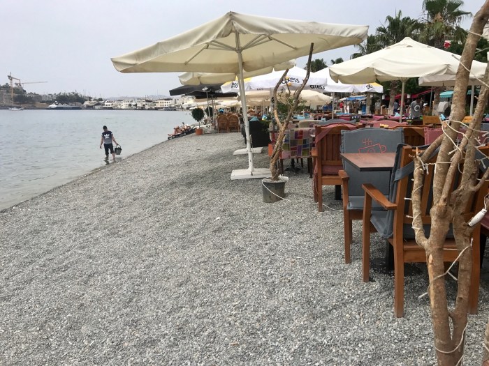 Promenade von Bodrum, viele Restaurants und Bars direkt am Kiesstrand