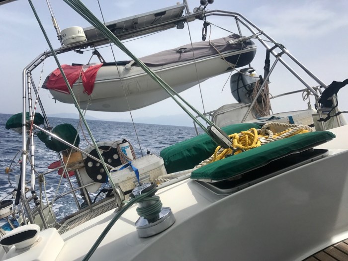 Wir klarierten also am Morgen beim Custum/Immigration Steg aus. Wir waren um halb Zehn fertig und ein paar Stunden später kamen wir nach einem schönen Segeltrip schon bei der griechischen Insel «Kalymnos» an!