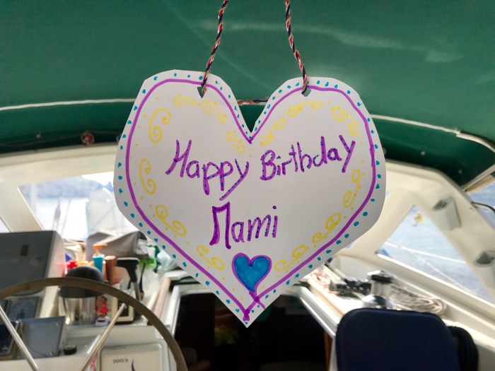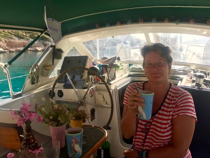 Am nächsten Morgen hab ich mir vorgenommen, zu meinem Geburtstag sehr früh aufzustehen, um die Stimmung in der Morgenfrühe noch ganz für mich geniessen zu können. Geburtstag zu haben bedeutet für mich unterdessen nicht mehr, die Jahre zu zählen, sondern mich auf ein weiteres Lebensjahr einzustimmen. Um was geht ist in meinem nächsten Lebensjahr, was sind die Wünsche und Ziele, was steht an im nächsten Jahr… Die letzten drei Jahre standen unter dem Thema «Toleranz»! Das kann man sich gut ausmalen, bei vier Personen auf einem Boot unterwegs in unbekannten Gewässern! So genoss ich die Stille der Bucht und hüpfte dann wieder unter die warme Decke – es ist nämlich immer noch recht kühl im Mittelmeer um diese Tages- und Jahreszeit!