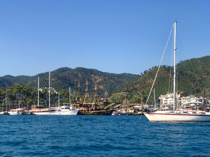Die Marina in Finike in der Südtürkei mit den Hügeln im Hintergrund, die wir bestiegen hatten