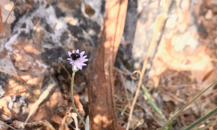 Blumenstrauss-Suche am kargen Hügel